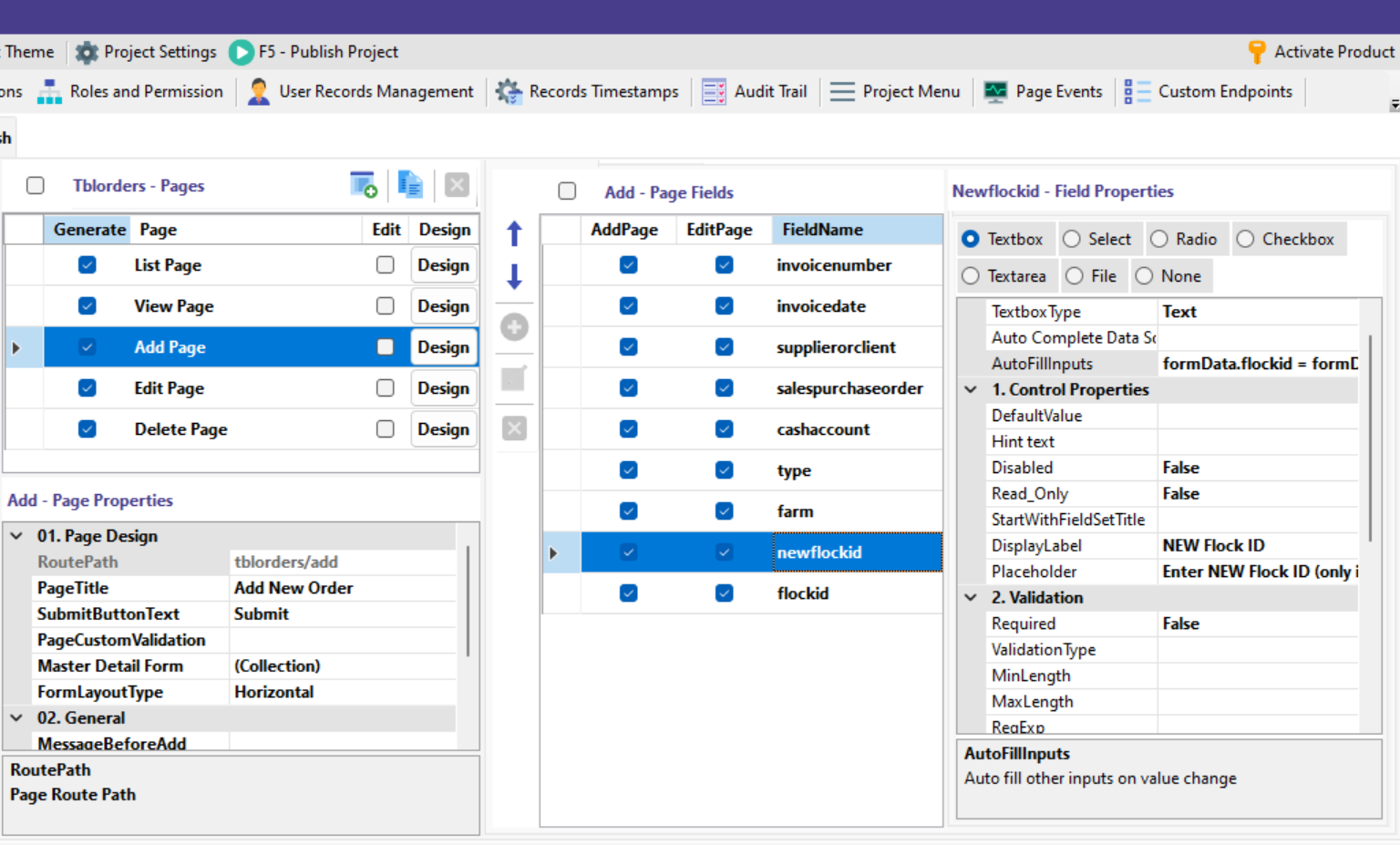 I am simply filling the property “autofillinputs” of the selected field on the right column with